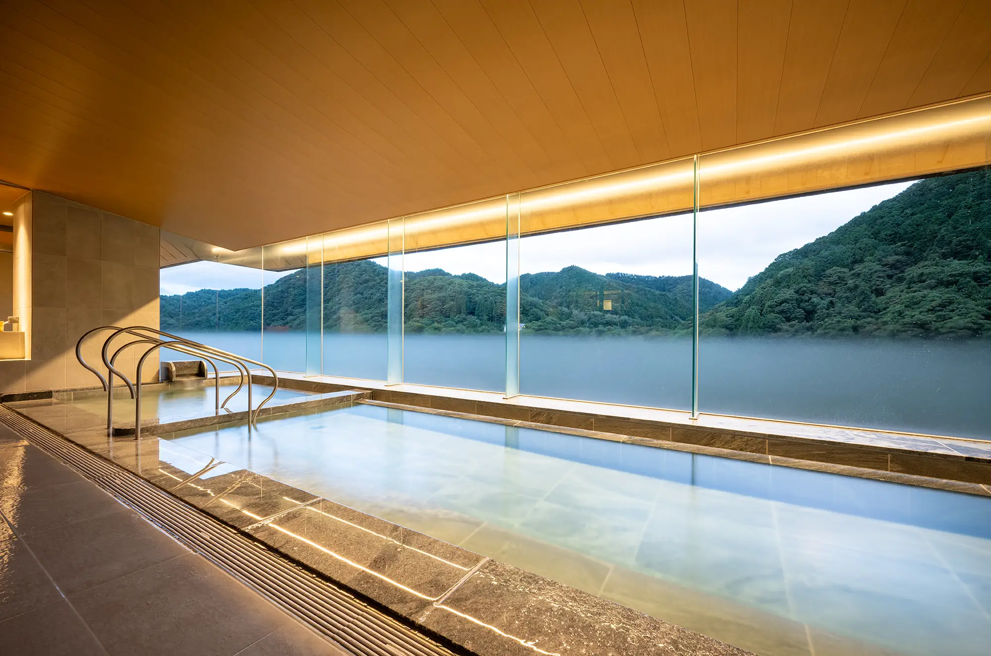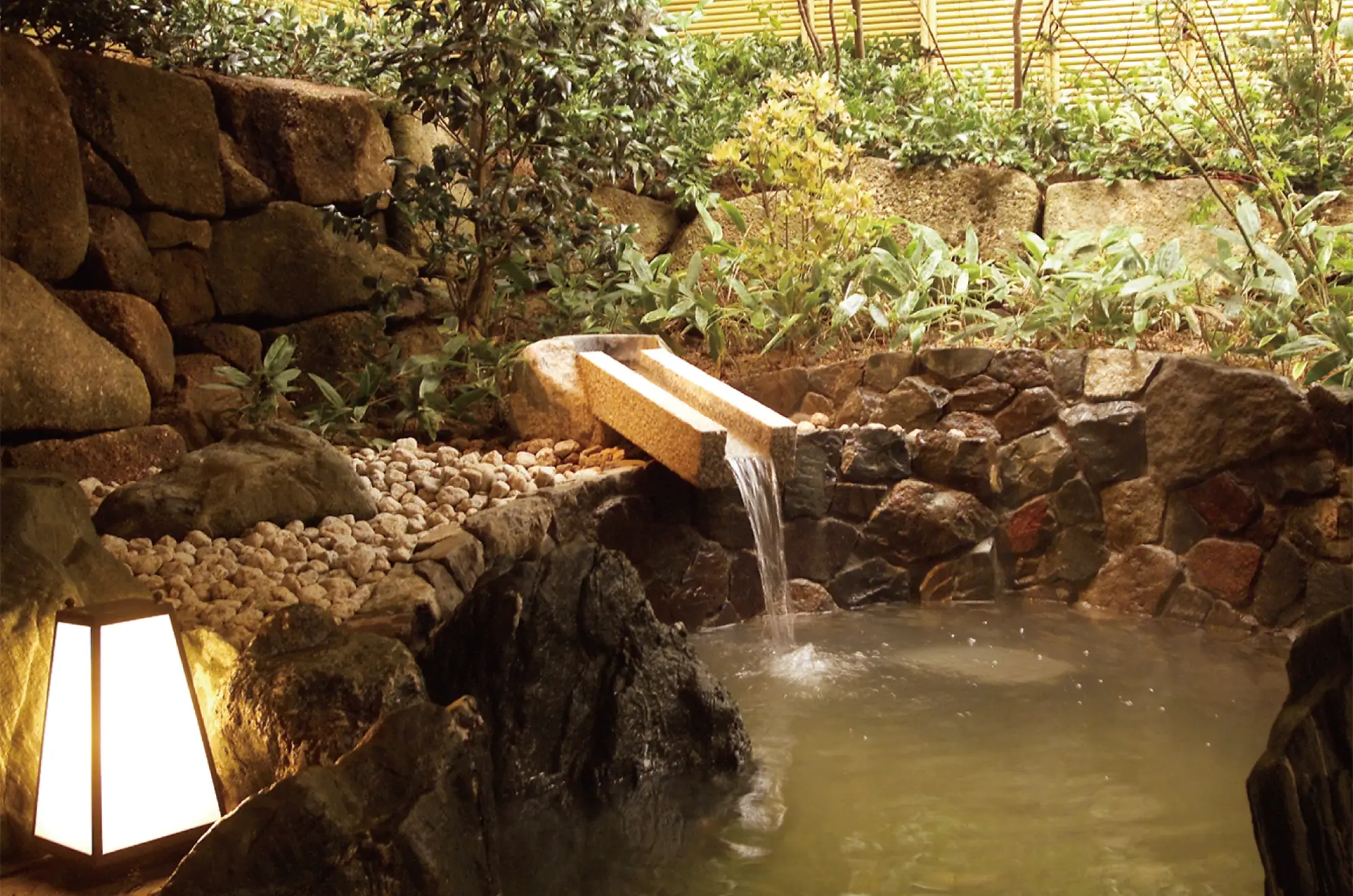 7階展望温泉浴場「萩姫の湯」と1階庭園温泉湯あそび処「ゆうじろうの湯」